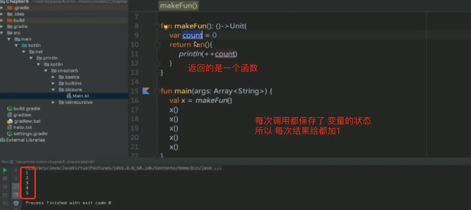fun makeFun(start: Int, step: Int): () -> Unit {