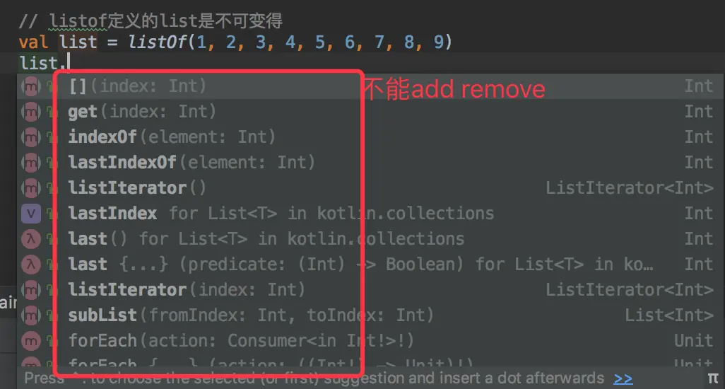 先在kotlin使用listOf定义一个list