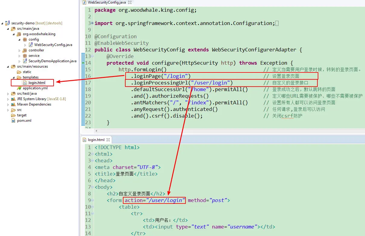 注意: 这个/authentication/require需要配置到安全认证配置:配置成默认登录界面,并设置成任何人均可以访问,并且这个重定向的页面可以设计成配置,从配置文件中读取。