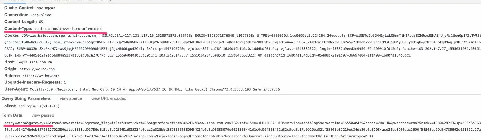 我们以新浪为例,可以看到其请求报文(formdata那里选择,view source可以看得比较清楚):