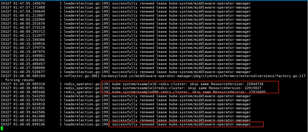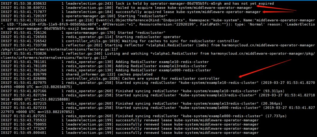 实例operator-manager-86d785b5fc-sszj2竞争获取到锁,开始处理业务逻辑:
