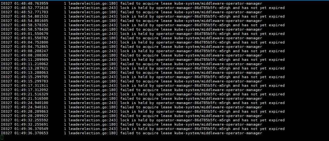 operator-manager-86d785b5fc-sszj2实例一直在竞争尝试获取锁: