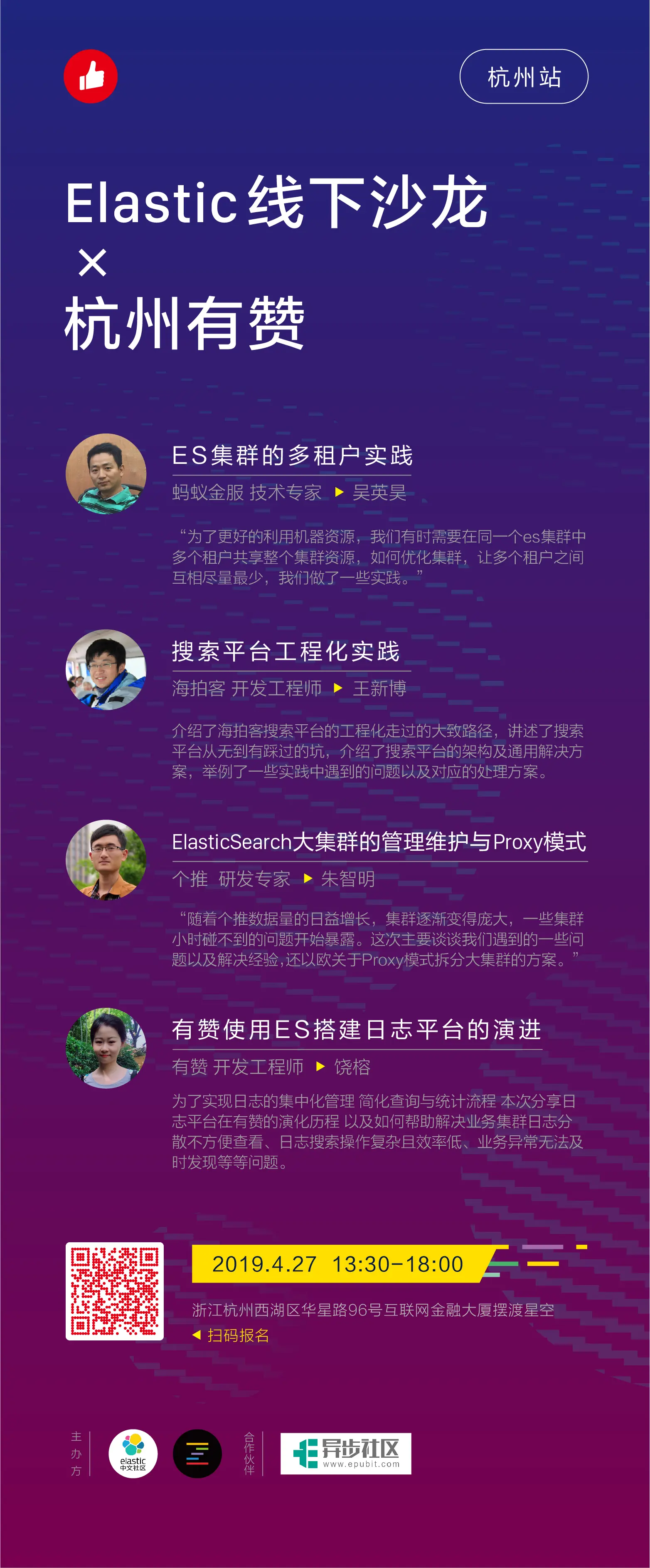 4月27日(周六)下午13:30,有赞技术中间件团队联合Elastic中文社区,围绕Elastic的开源产品及周边技术,在杭州举办一场线下技术交流活动。