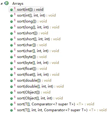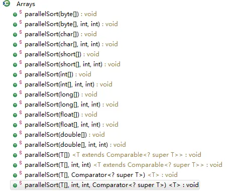 Arrays提供两种排序:sort和parallelSort。首先看下sort相关的函数: