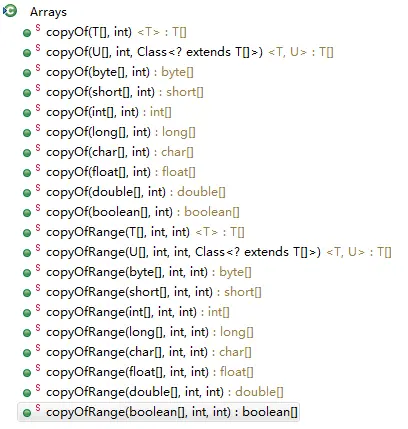 copyOf将源数组从下标0开始,拷贝指定数量的元素并返回新的数组;copyRangeOf将元素从指定下标范围的元素中拷贝指定数量个元素并返回信的数组。