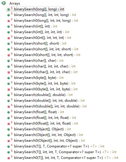 Arrays可以对除boolean的基本类型数据进行二分查找,可以对任意类型的数组进行二分查找,且可以指定二分查找的下标范围。对于非基本类型的数组,可以自定义Comparator