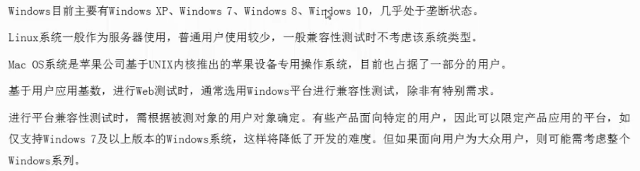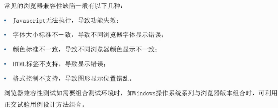 - 操作系统、浏览器及显示屏幕分辨率的型号、规格越来越多,B/S与C/S结构一样,以验证被测对象能否在不同的操作系统、浏览器及分辨率正常工作