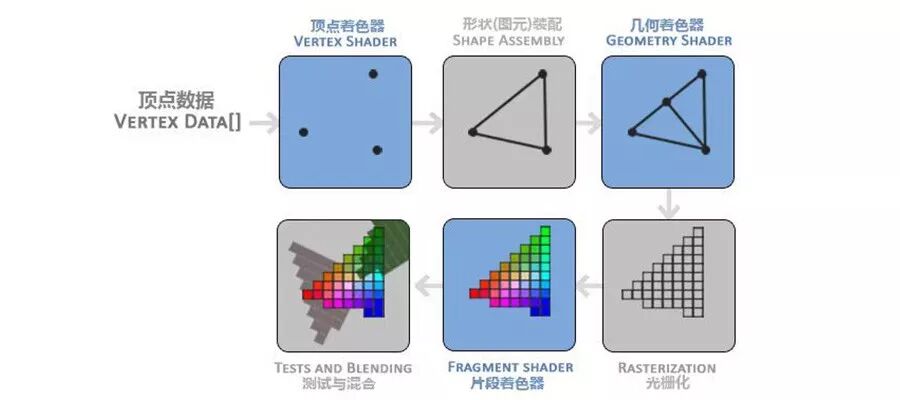 OpenGL ES 目前还不支持几何着色器,这个部分我们可以先不关注。