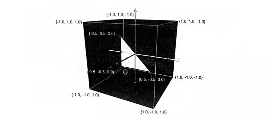 OpenGL ES 坐标系的范围是 -1 ~ 1,是一个三维的坐标系,通常用 X、Y、Z 来表示。Z 轴的正方向指向屏幕外。在不考虑 Z 轴的情况下,左下角为 (-1, -1, 0),右上角为 (1, 1, 0)。