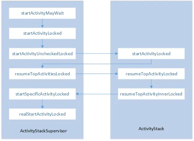 在讨论问题之前,还是要借用Activity启动流程中介绍的ActivityStackSupervisor和ActivityStack之间调用流程图。