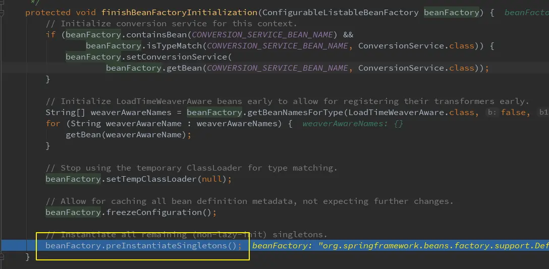 finishBeanFactoryInitialization(beanFactory)