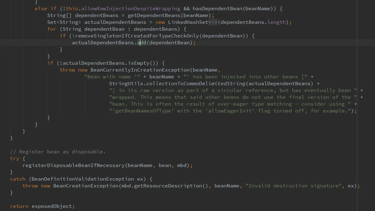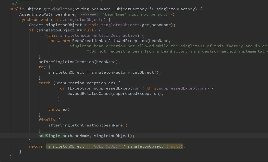 singletonObject = singletonFactory.getObject();