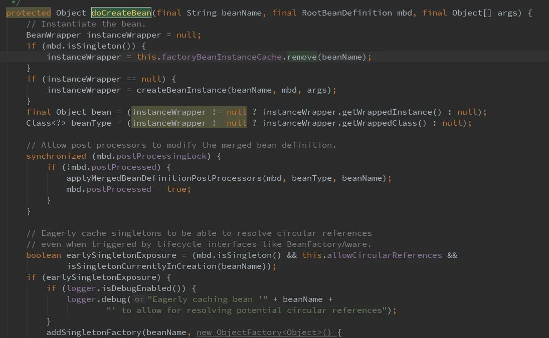 Object beanInstance = doCreateBean(beanName, mbdToUse, args)