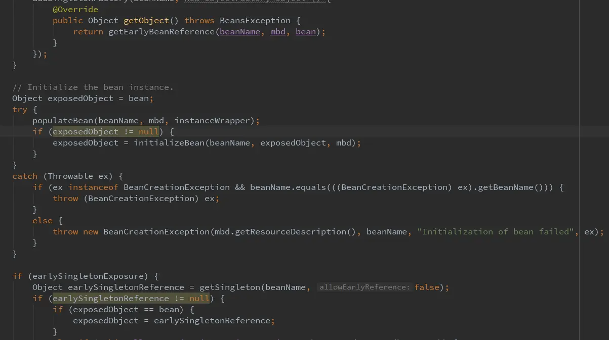 exposedObject = initializeBean(beanName, exposedObject, mbd)