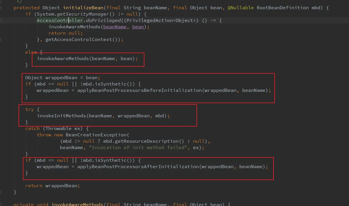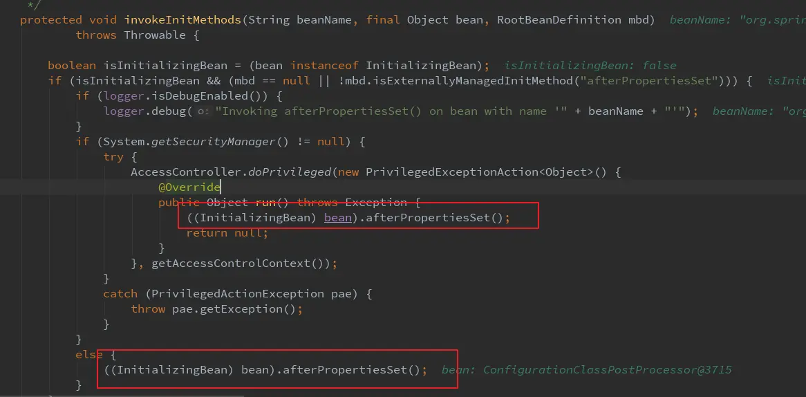 - 判断是否是InitializingBean的实现,执行接口规定的初始化afterPropertiesSet