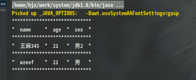 最近在学习使用java来编写cli应用,但是在信息展示上碰到了难题。原因是没有很好工具来展示一个由字符串组成的表格。在git上搜到阿里巴巴有一个叫做 text-ui 的开源项目可以用,但是这个工具在制作表格的时候如果表格内容是中英文混合的,表格就会乱掉。于是就自己写了一个工具类来打印一个字符串组成的表格