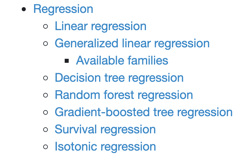 ◆ Spark实现的回归算法很丰富 ,有很多模型同样可以用于分类