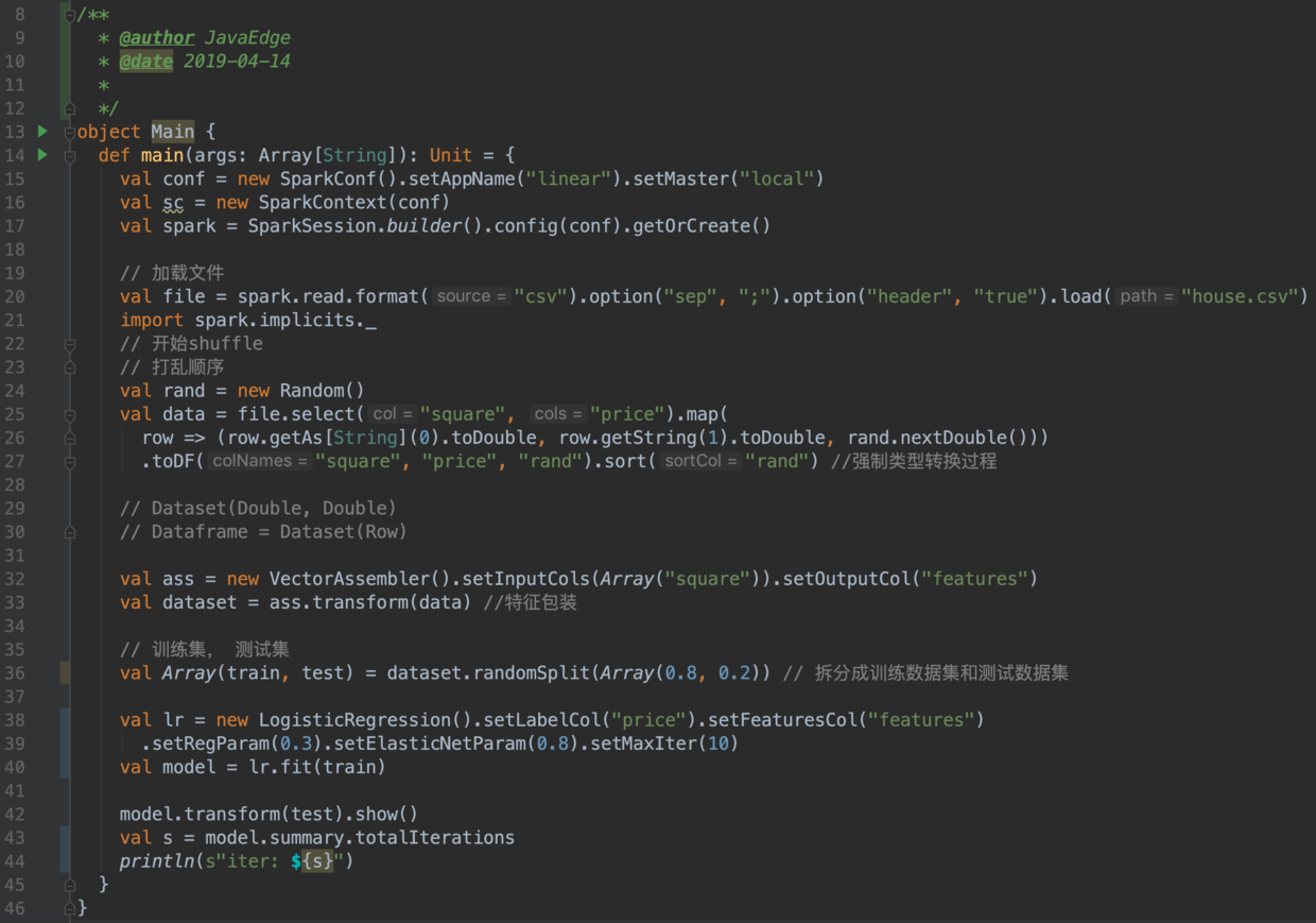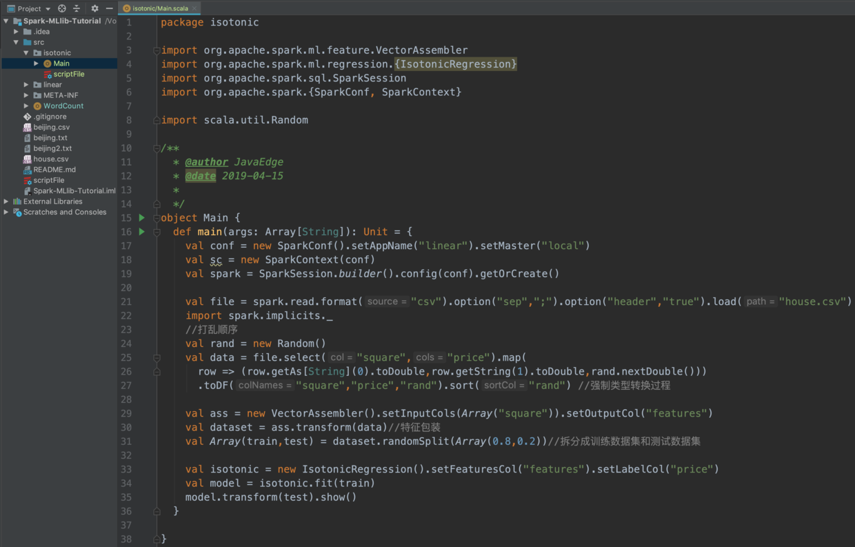 相对于x1≤x2≤...≤xn的完全顺序,其中 wi是正的权重。由此产生的函数称为保序回归。 它可被视为顺序限制约束的最小二乘问题。基本上保序回归是最适合原始数据点的单调函数。 我们实现了一个pool adjacent violators algorithm 算法,该算法使用一种并行化保序回归的方法。 训练输入是一个DataFrame,它包含三列 : 标签,功能和权重。 此外,IsotonicRegression算法有一个称为等渗默认为true的可选参数。该论证指定等渗回归是等渗的(单调递增的)还是反单调的(单调递减的)。 训练返回IsotonicRegressionModel,可用于预测已知和未知特征的标签。 保序回归的结果被视为分段线性函数。因此,预测规则是: 1 如果预测输入与训练特征完全匹配,则返回相关联的预测。如果有多个具有相同特征的预测,则返回其中一个。哪一个是未定义的(与java.util.Arrays.binarySearch相同) 2 如果预测输入低于或高于所有训练特征,则分别返回具有最低或最高特征的预测。 3 如果存在具有相同特征的多个预测,则分别返回最低或最高。