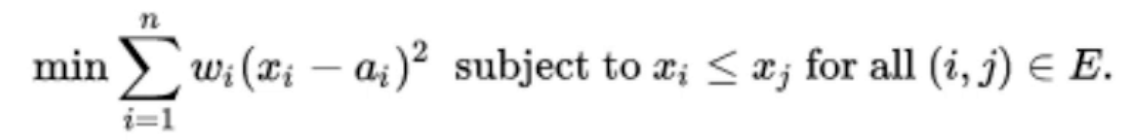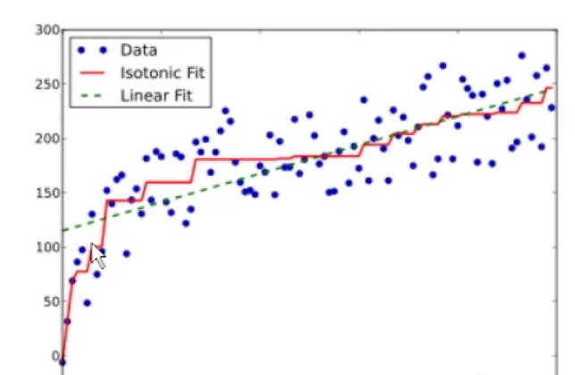 保序回归(英文:Isotonic regression)在数值分析中指的是在保序约束下搜索一个加权 w 的最小二乘 y 以拟合变量 x,它是一个二次规划问题: