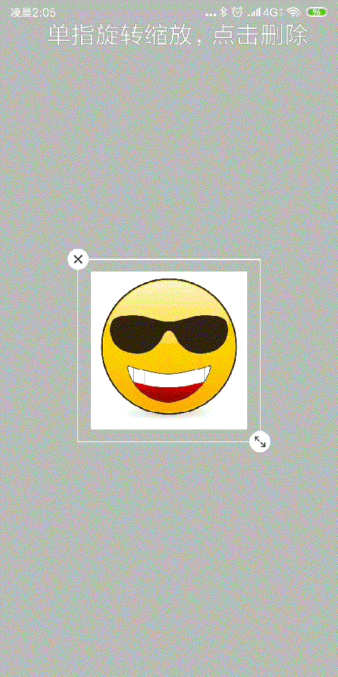 一个好消息是,我把 github 中的核心代码打包上传到了 JCenter 中,如果读者想要用这个包只要像使用普通依赖一样在 build.gradle 文件中添加:implementation 'com.whensunset:sticker:0.2'。这个库会一直维护,大家可以多提 issue。先上几个功能图吧: