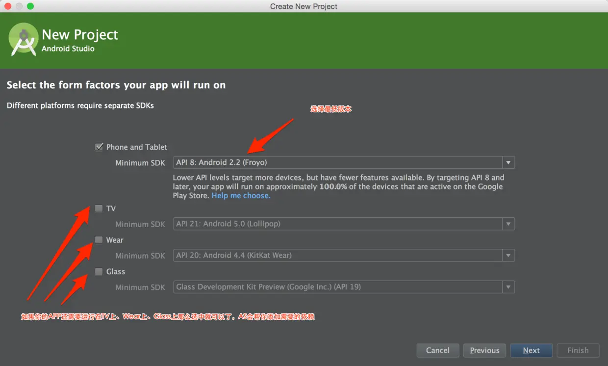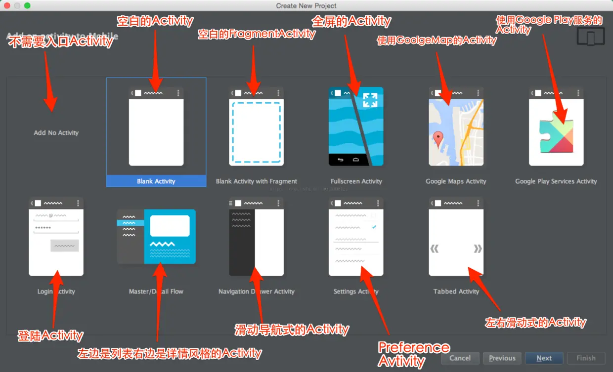 接下里选择入口Activity的类型,AS会为你添加相应的依赖