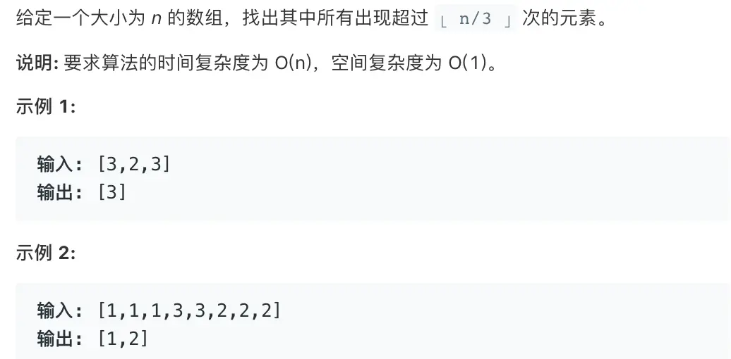 因为我们要求出现次数超过n/3,我们在找到m,n的值以后还要对数量进行统计,看是否超过,如果是,则输出。