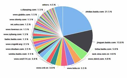 以下为搜索一类关键词,各网站的整体排名情况,比例越大说明排名能力越好。
