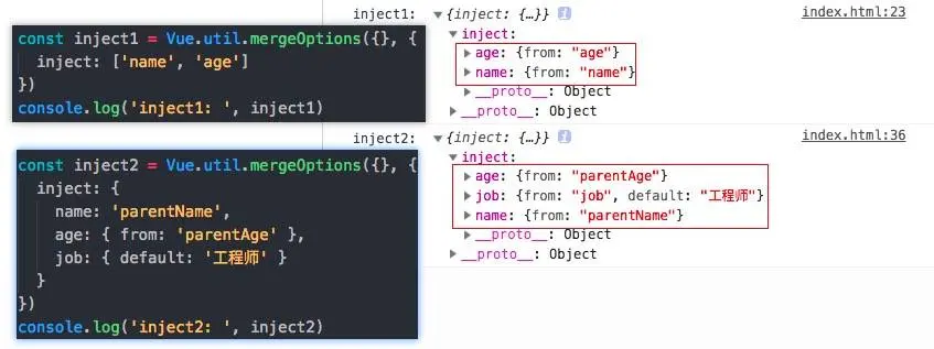 以上三个函数每个if分支都是根据Vue提供的feature来进行不同的处理,其根本目的就是为了使传入的参数统一。如果你对哪个分支还有疑惑,可以去阅读下相关的官方文档。props、inject、directives。