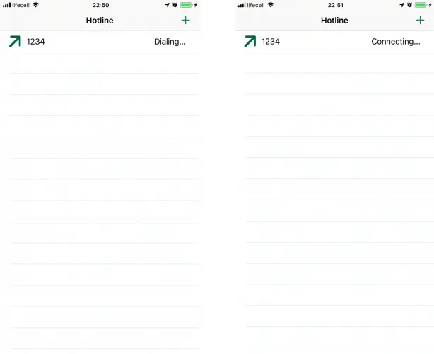 要测试识别呼叫,请再次启动Hotline并模拟新call。 这次输入数字1111,您将看到以下调用UI:
