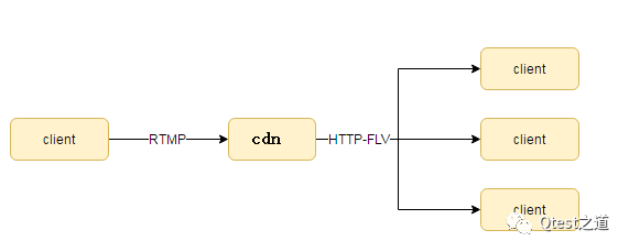 RTMP 是直接将流的传输架在 RTMP 协议之上,而 HTTP-FLV 是在 RTMP 和客户端之间套了一层转码的过程,即: