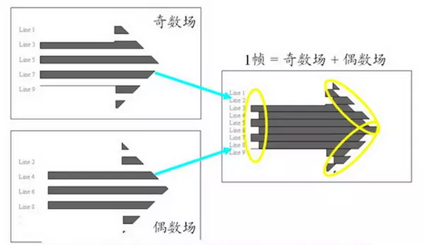 当采集视频信号时,如果采用隔行扫描(奇、偶数行),则扫描下来的一帧图像就被分为了两个部分,这每一部分就称为「场」,根据次序分为:「顶场」和「底场」。