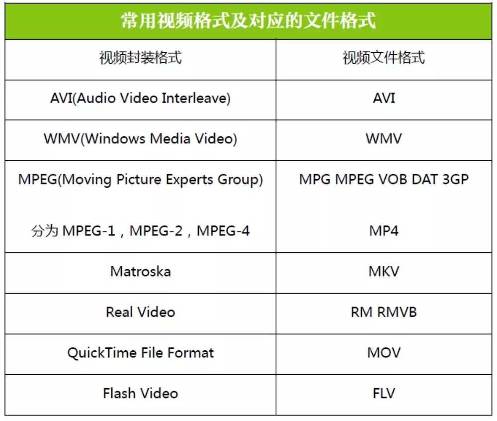 视频封装格式,简称视频格式,相当于一种储存视频信息的容器,它里面包含了封装视频文件所需要的视频信息、音频信息和相关的配置信息(比如:视频和音频的关联信息、如何解码等等)。一种视频封装格式的直接反映就是对应着相应的视频文件格式。