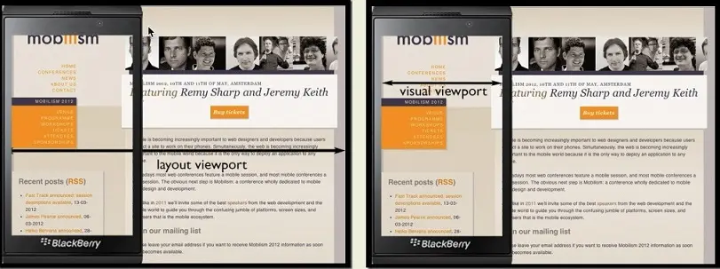 Narrow screen devices (e.g. mobiles) render pages in a virtual window or viewport, which is usually wider than the screen, and then shrink the rendered result down so it can all be seen at once. Users can then pan and zoom to see different areas of the page. For example, if a mobile screen has a width of 640px, pages might be rendered with a virtual viewport of 980px, and then it will be shrunk down to fit into the 640px space. This is done because many pages are not mobile optimized, and break (or at least look bad) when rendered at a small viewport width. This virtual viewport is a way to make non-mobile-optimized sites in general look better on narrow screen devices. (Using the viewport meta tag to control layout on mobile browsers)