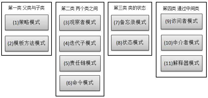 第一类:通过父类与子类的关系进行实现。第二类:两个类之间。第三类:类的状态。第四类:通过中间类