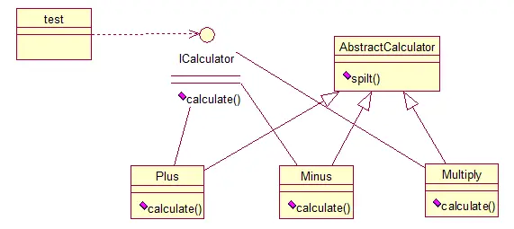 就是在AbstractCalculator类中定义一个主方法calculate,calculate()调用spilt()等,Plus和Minus分别继承AbstractCalculator类,通过对AbstractCalculator的调用实现对子类的调用,看下面的例子: