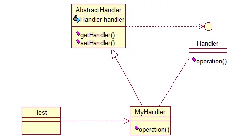 Abstracthandler类提供了get和set方法,方便MyHandle类设置和修改引用对象,MyHandle类是核心,实例化后生成一系列相互持有的对象,构成一条链。