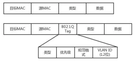 我们只需要在原来的二层头上加一个 TAG,里面有个 VLAN ID,共 12 位,可以划分 4096 个 VLAN。对于普通办公室,这个数量应该是够用的。