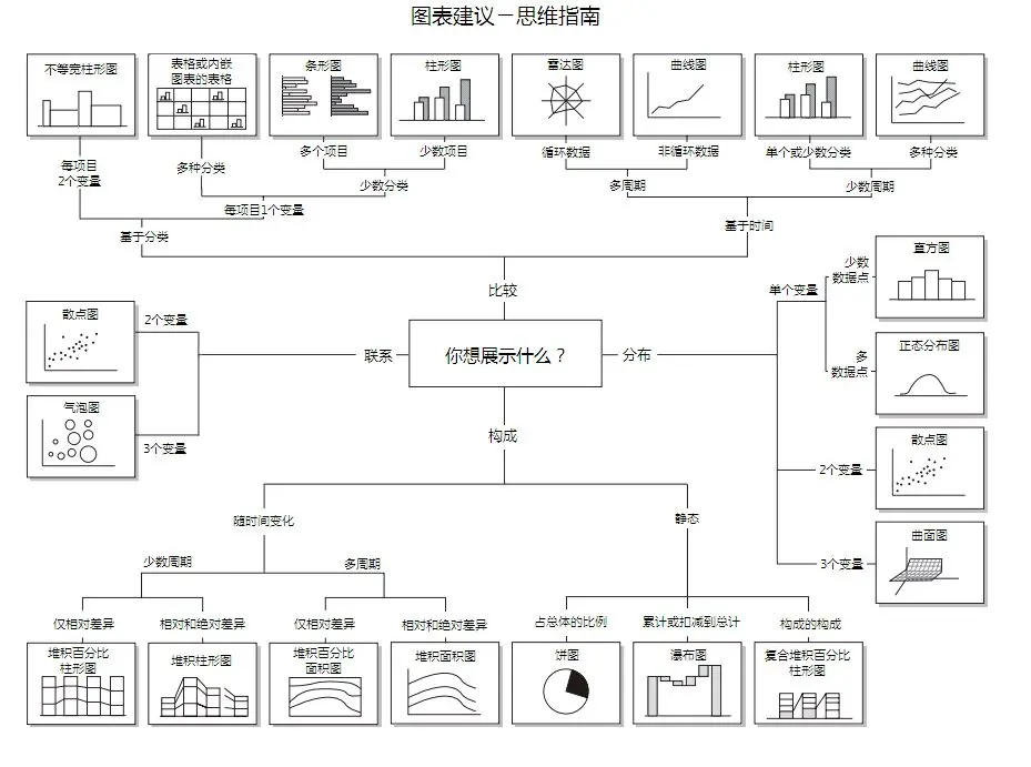 下图为我们提供模型选择的思路,我们根据数据类型、指标权重、数据关系等确定数据最终呈现的模型。