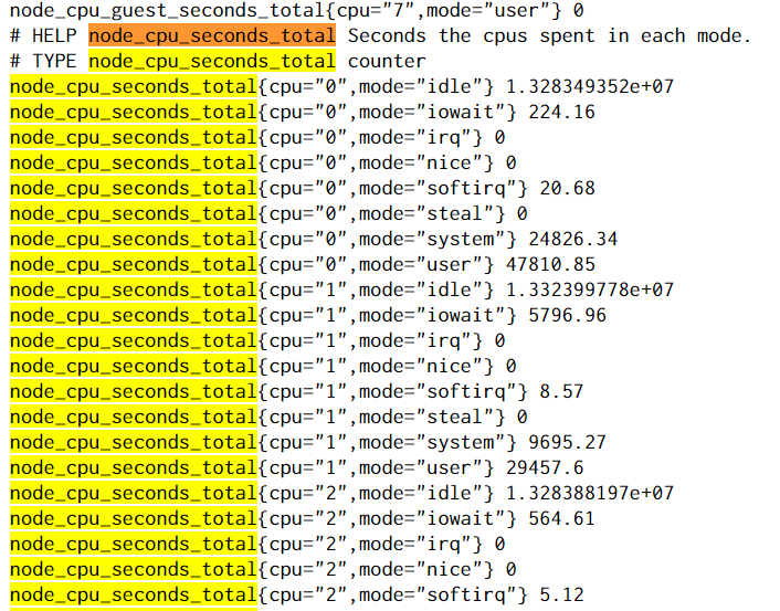 CPU在不同工作模式下的使用时间:node_cpu_seconds_total
