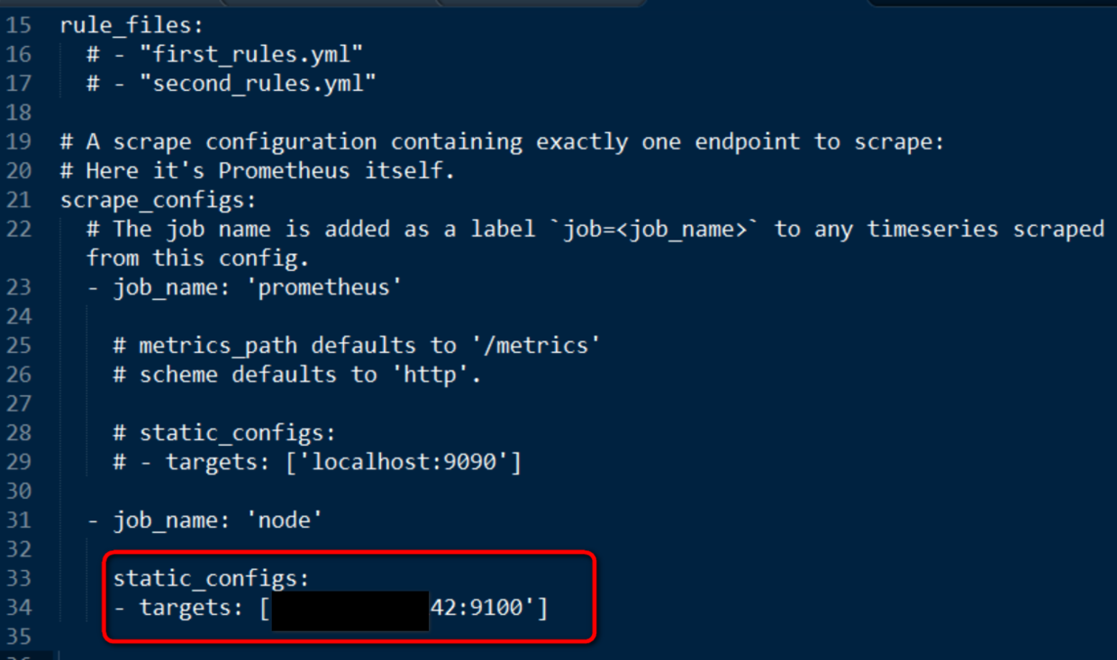 在Prometheus安装目录的prometheus.yml文件里定义一个job,指向Linux系统上运行的node explorer: