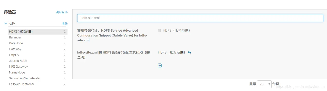 1、找到hdfs-site.xml 的 HDFS 服务高级配置代码段(安全阀)
