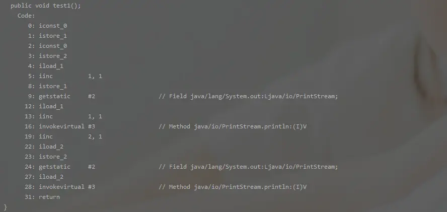 * 4: iload_1 // 将第一个局部变量值推送至栈顶