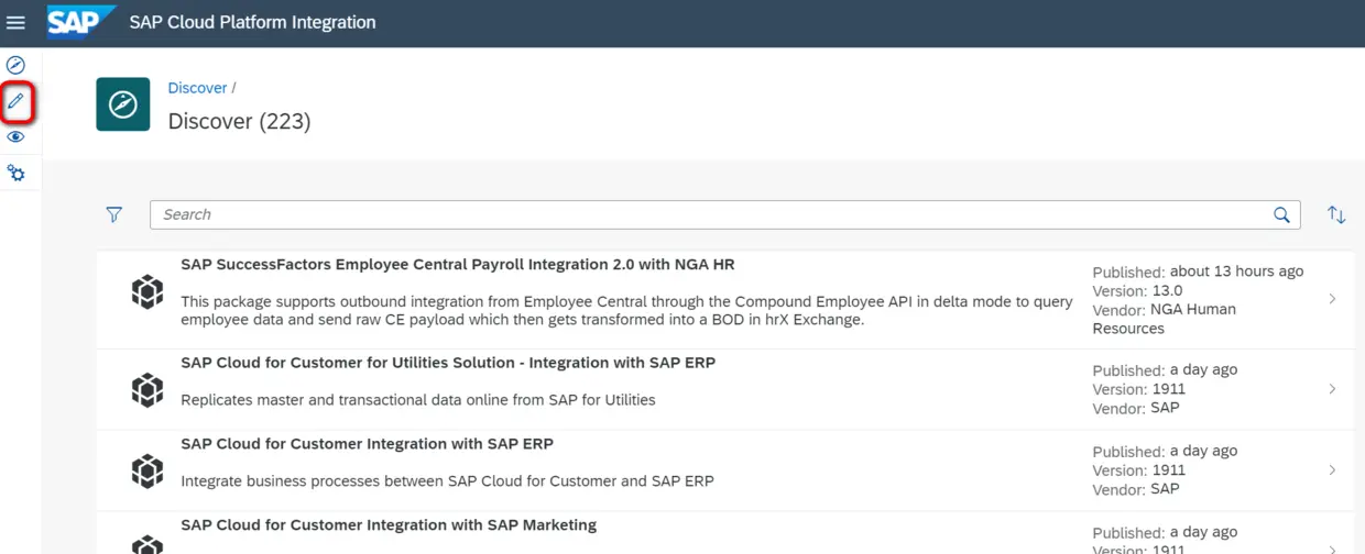登录SAP Cloud Platform integration tenant,点击Edit图标:
