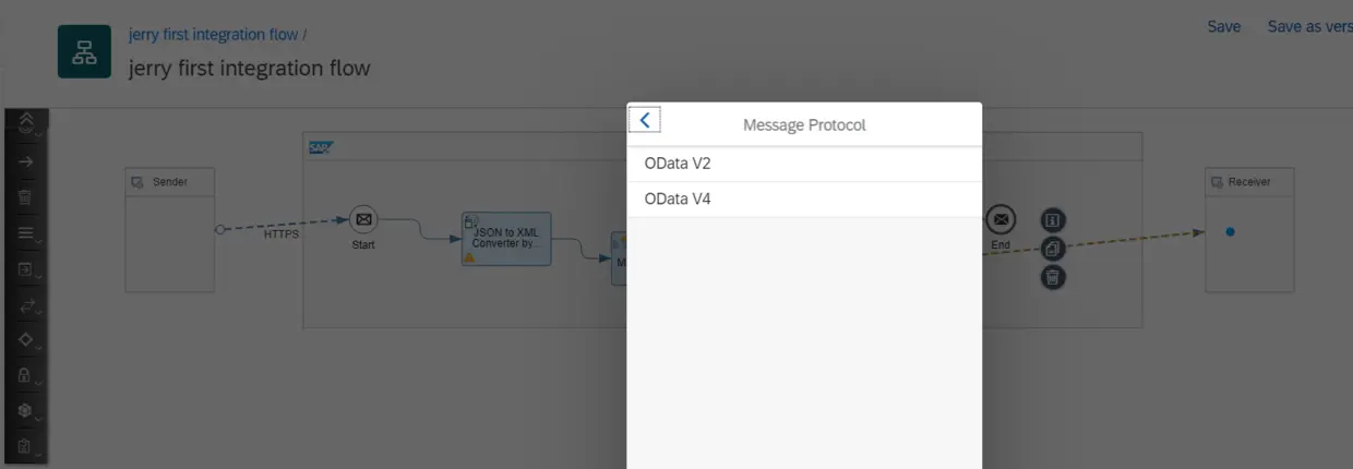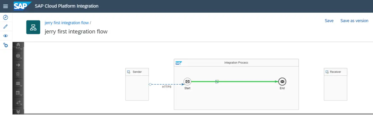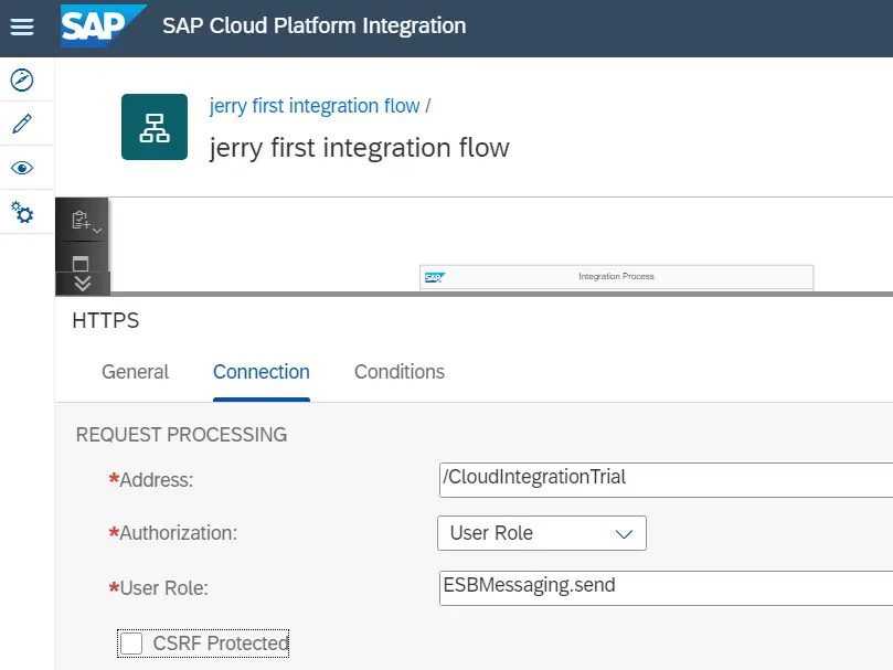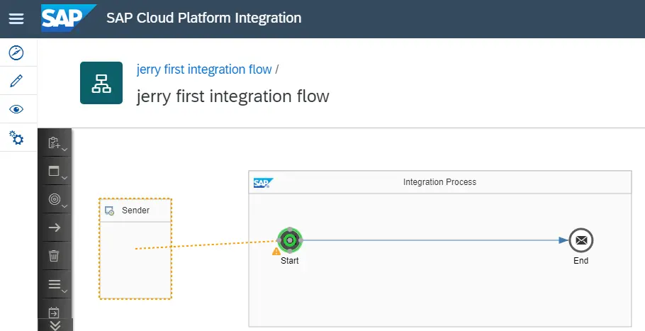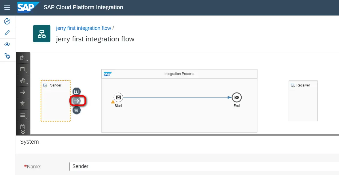 创建sender channel:把integration flow切换成编辑模式,点击这个箭头,把它拖到Start图片位置: