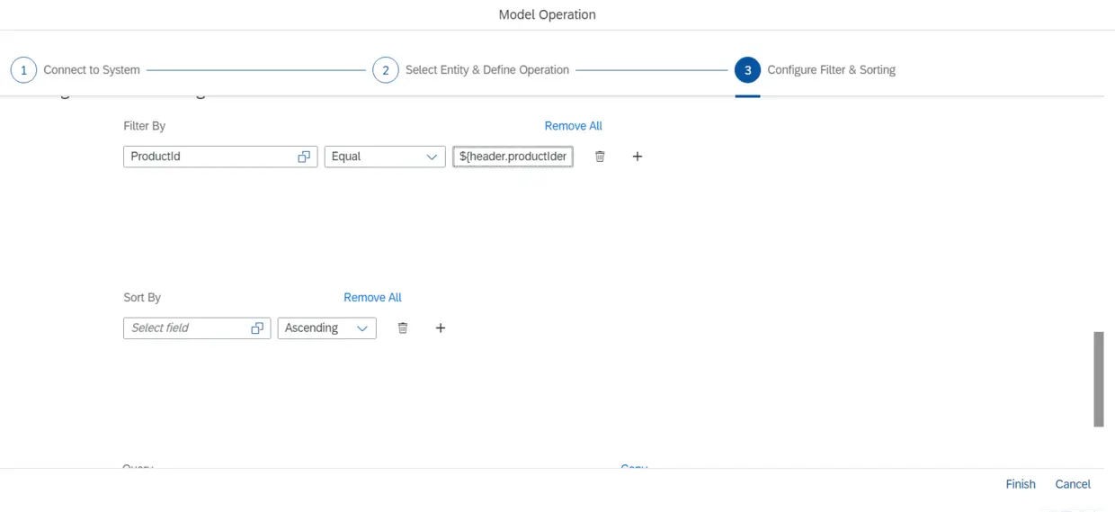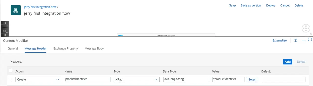 操作类型选择Equal,值维护成${header.productIdentifier}: