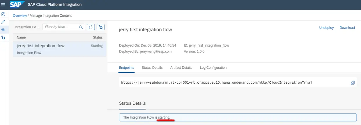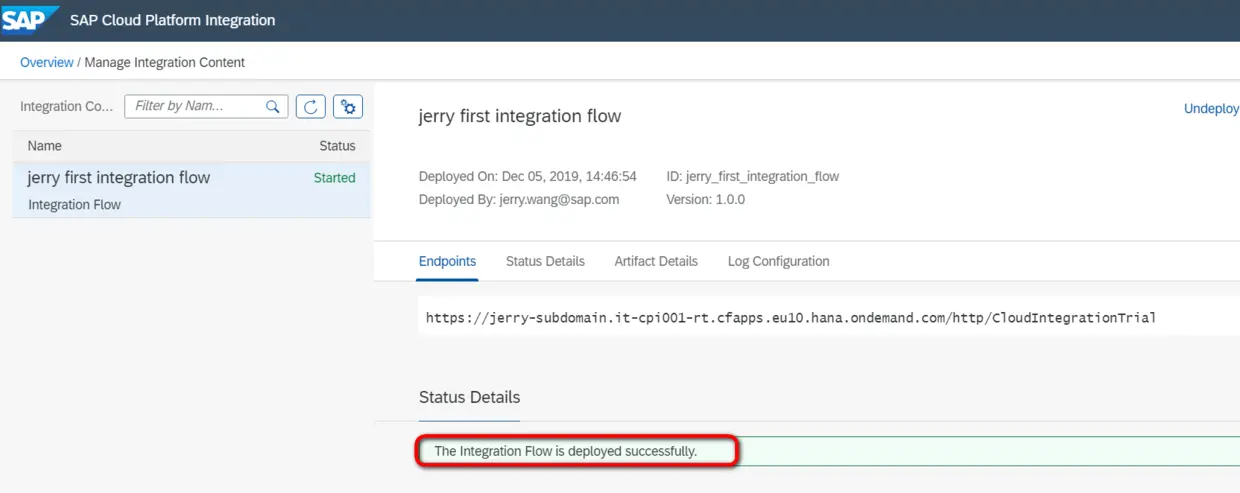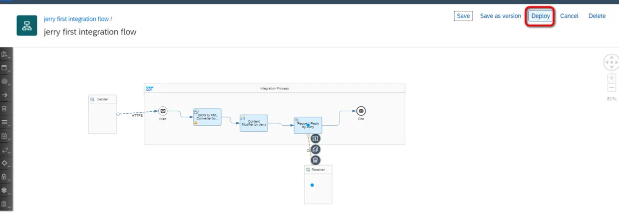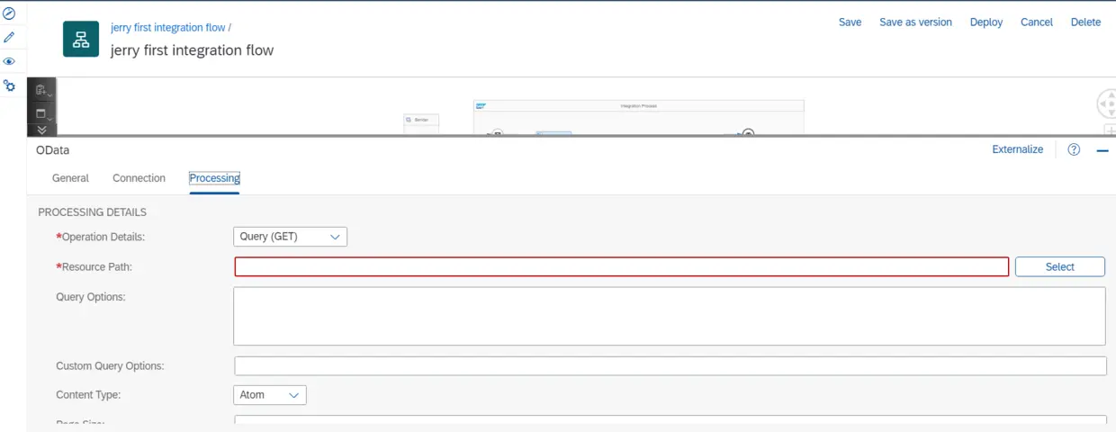 这样,当inbound HTTP请求里携带的product ID传入Odata adapter时,后者会调用odata取得product明细。点击Deploy进行部署。