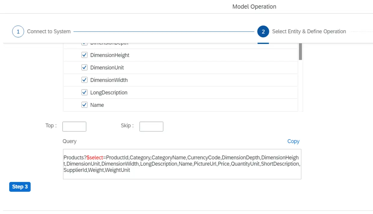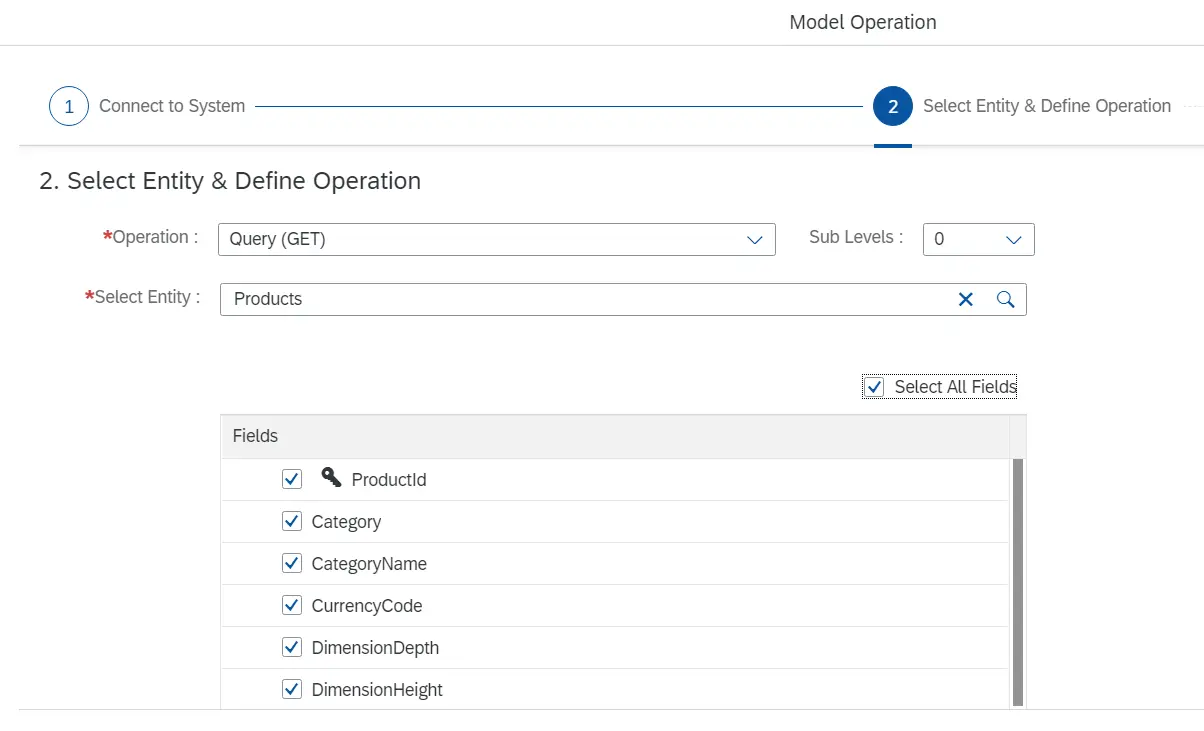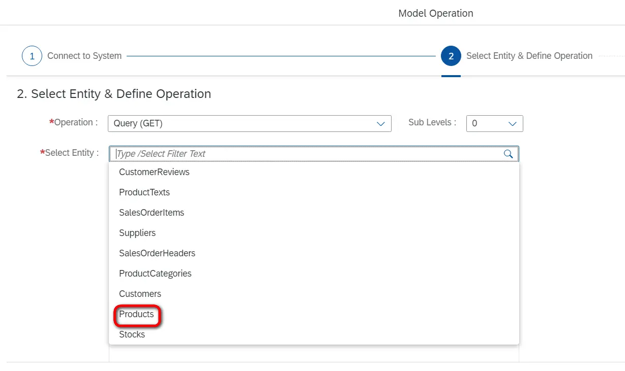 从Select Entity的下拉列表里选择Products: