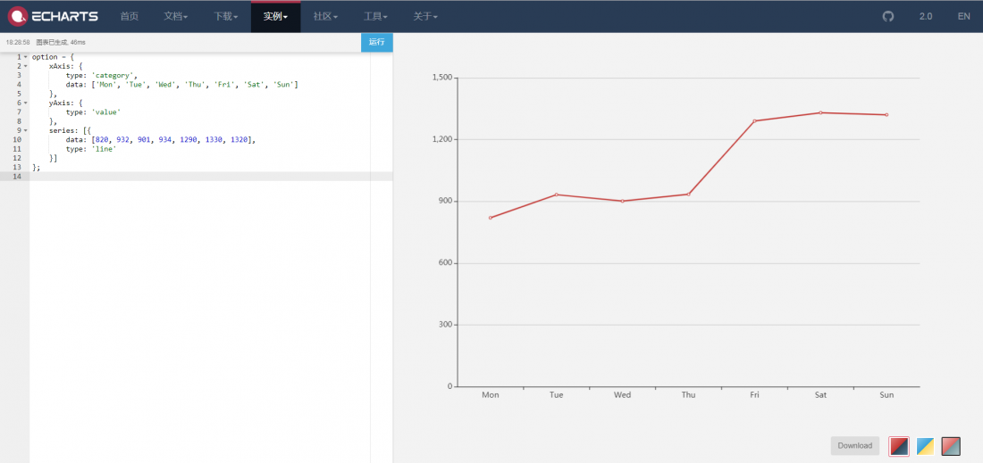 当然,不只是只有柱状图,还有各种其他的图表,怎么使用呢,首先点击实例,我们就来到了这个页面