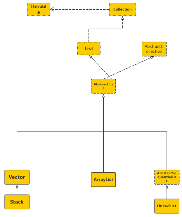 - ArrayList 继承了AbstractList,实现了List。它是一个数组队列,提供了相关的添加、删除、修改、遍历等功能。
